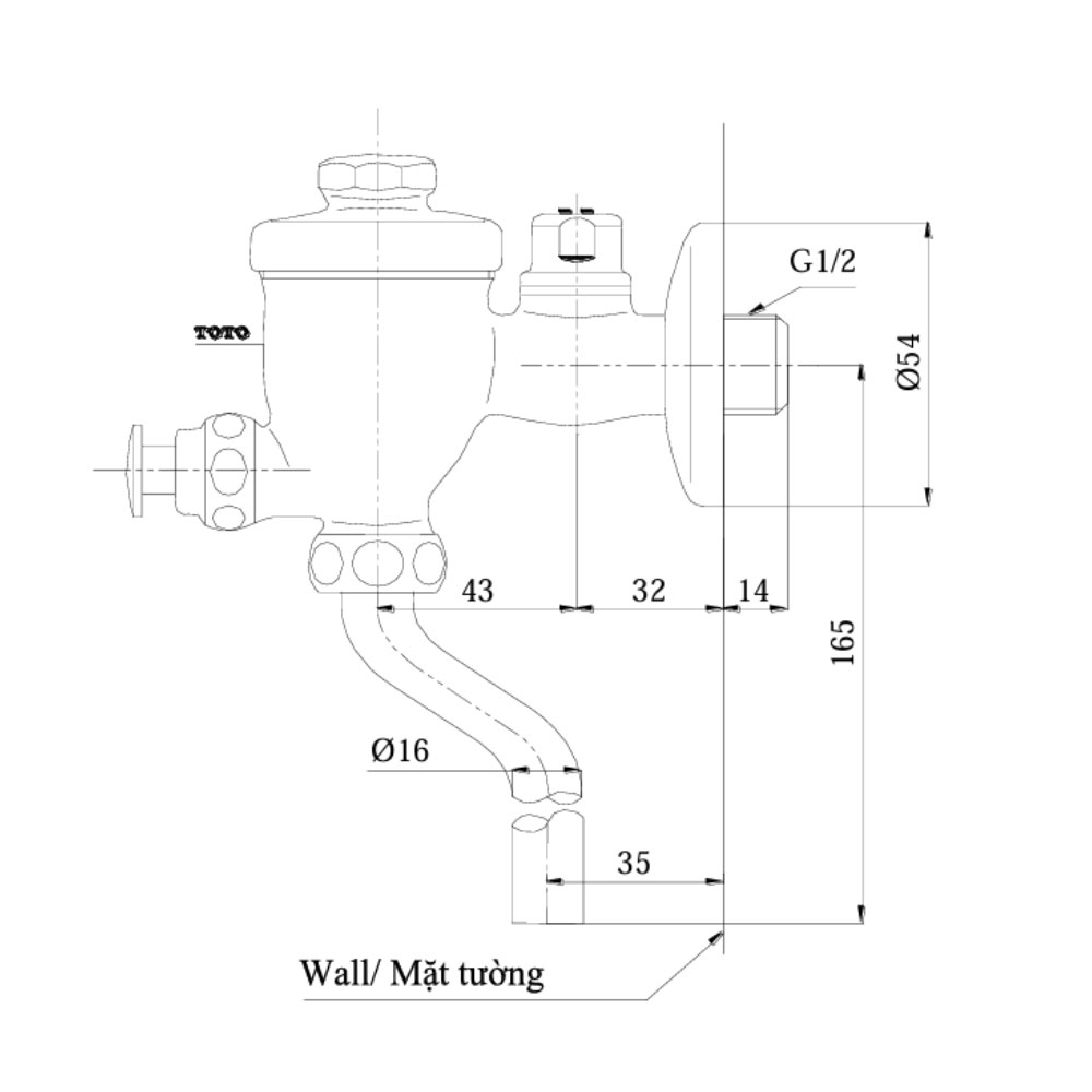 Bản vẽ kỹ thuật van xả nhấn tiểu nam TOTO DU601SRR