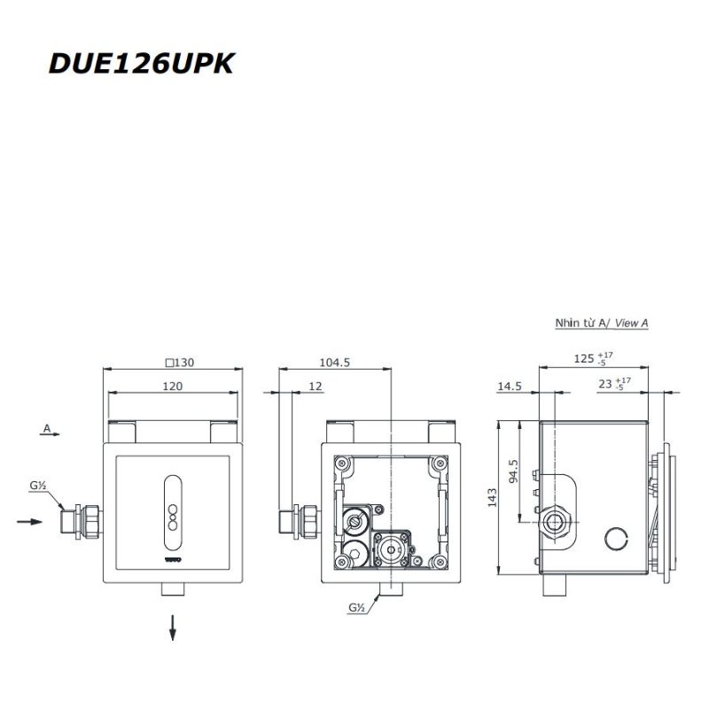Bản vẽ kỹ thuật van xả tiểu cảm ứng TOTO dùng pin DUE126UPK