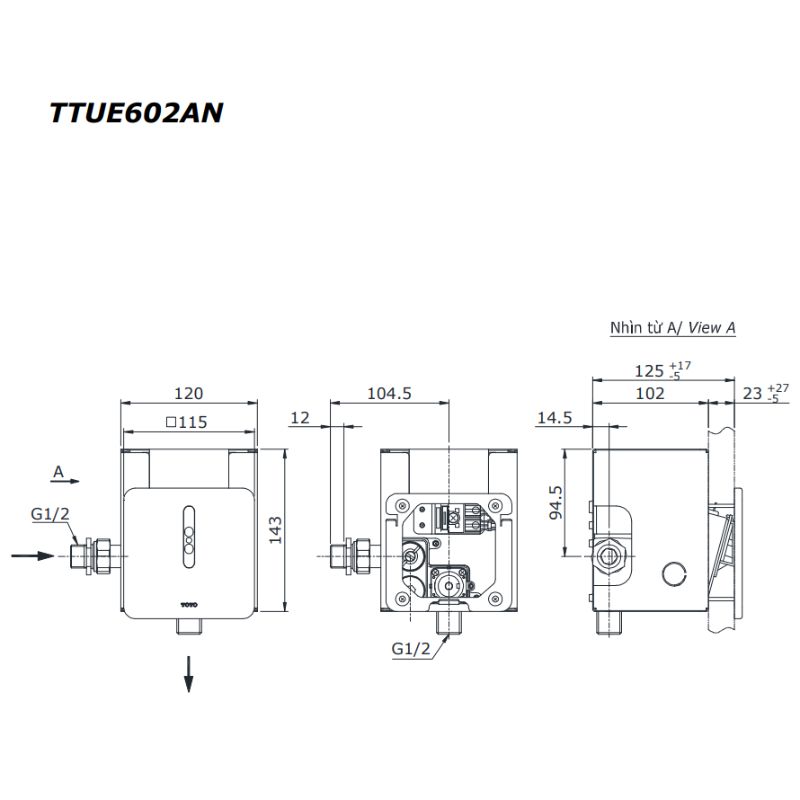 Bản vẽ kỹ thuật van xả tiểu cảm ứng TOTO TTUE602AN