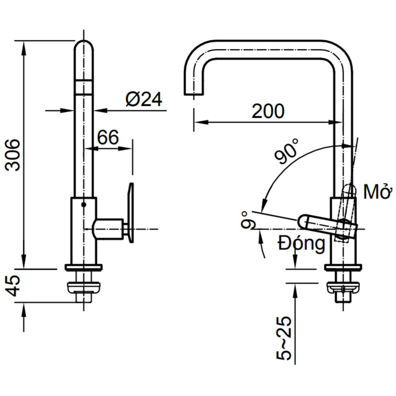 Bản vẽ kỹ thuật vòi rửa chén bát INAX SFV-30 1 chế độ nước lạnh