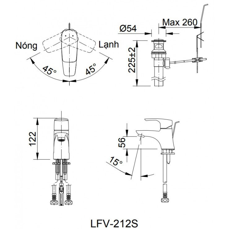 Bản vẽ kỹ thuật vòi chậu lavabo nóng lạnh INAX LFV-212S