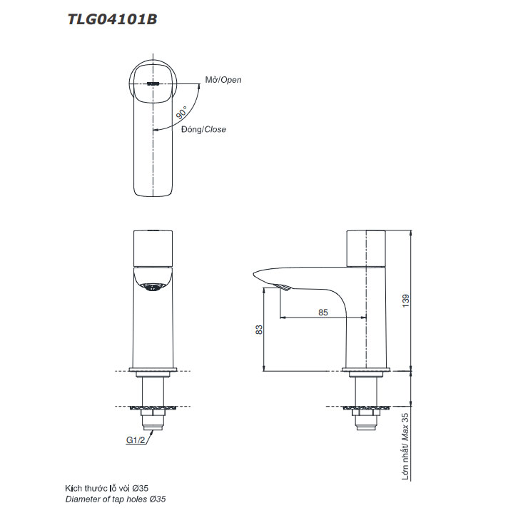 Bản vẽ kỹ thuật vòi chậu nước lạnh TOTO TLG04101B