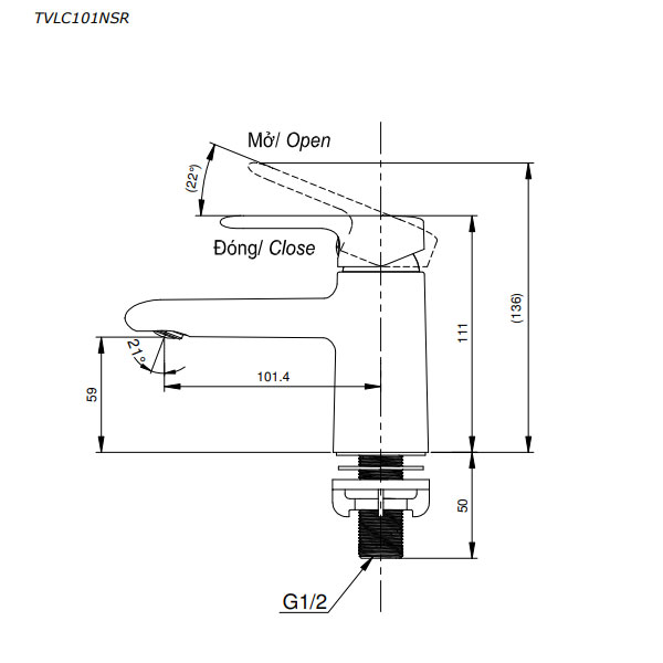 Bản vẽ kỹ thuật vòi chậu nước lạnh TOTO TVLC101NSR