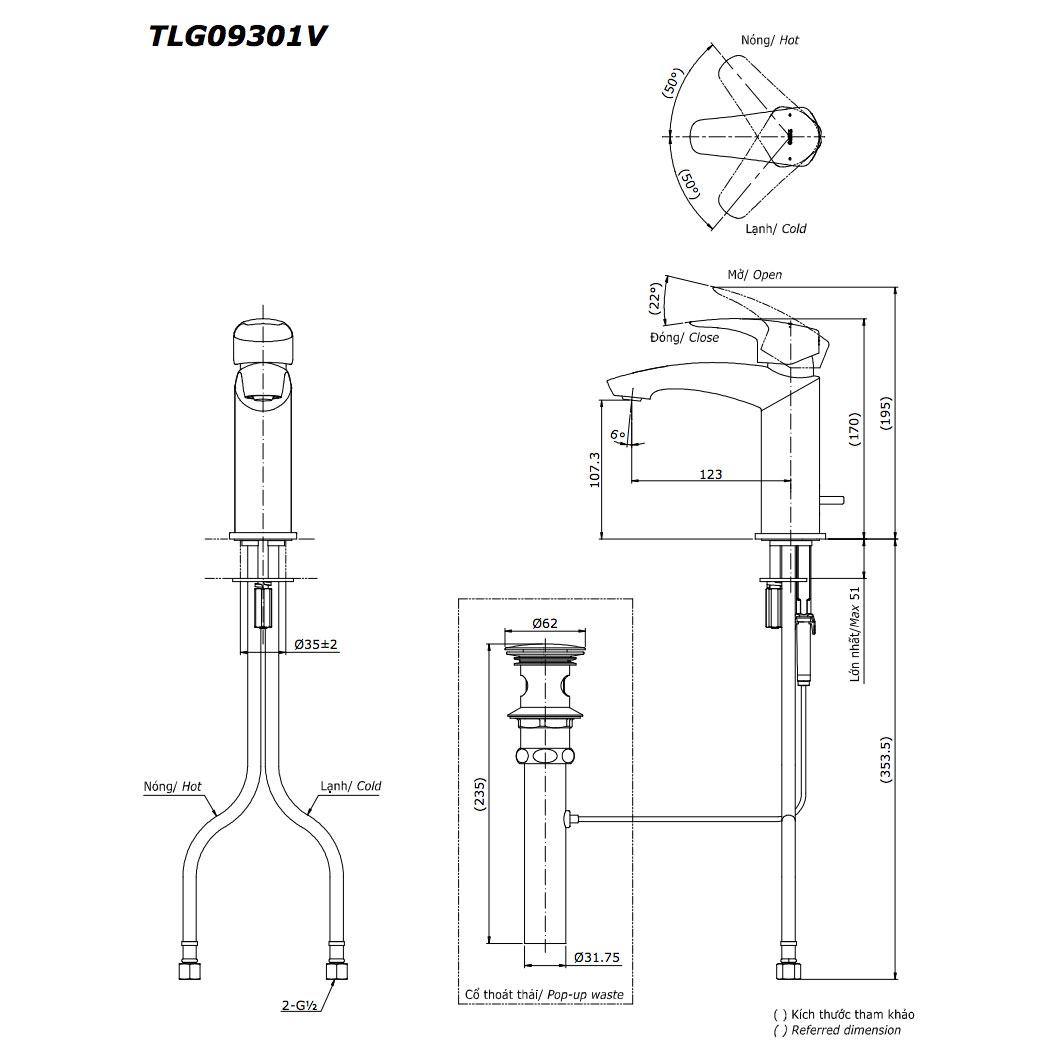 • Vòi lavabo bao gồm chặn xả, không bao gồm ống xả thải chữ P
