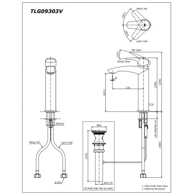 Bản vẽ kỹ thuật của vòi lavabo TOTO TLG09303V