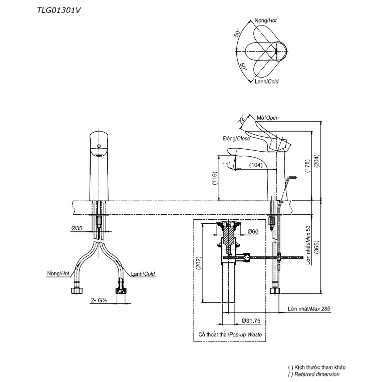 Bản vẽ kỹ thuật vòi chậu lavabo nóng lạnh GO TOTO TLG01301V