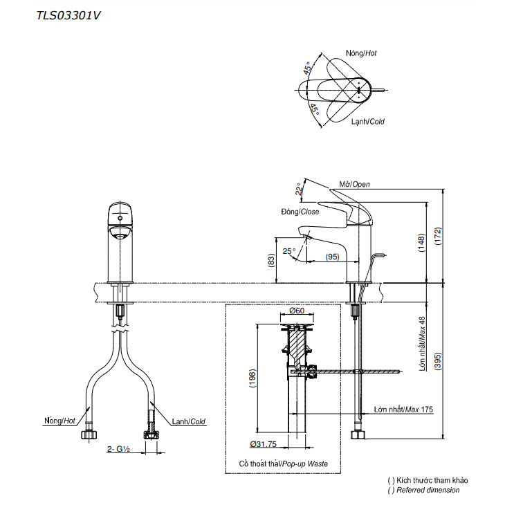 Bản vẽ kỹ thuật vòi chậu lavabo nóng lạnh LC TOTO TLS03301V