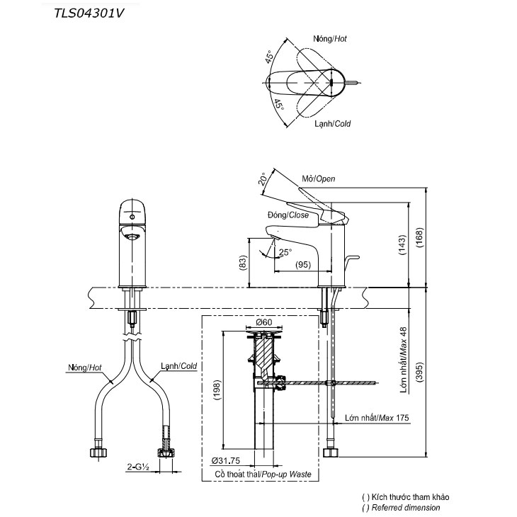 Bản vẽ kỹ thuật vòi chậu lavabo nóng lạnh LF TOTO TLS04301V
