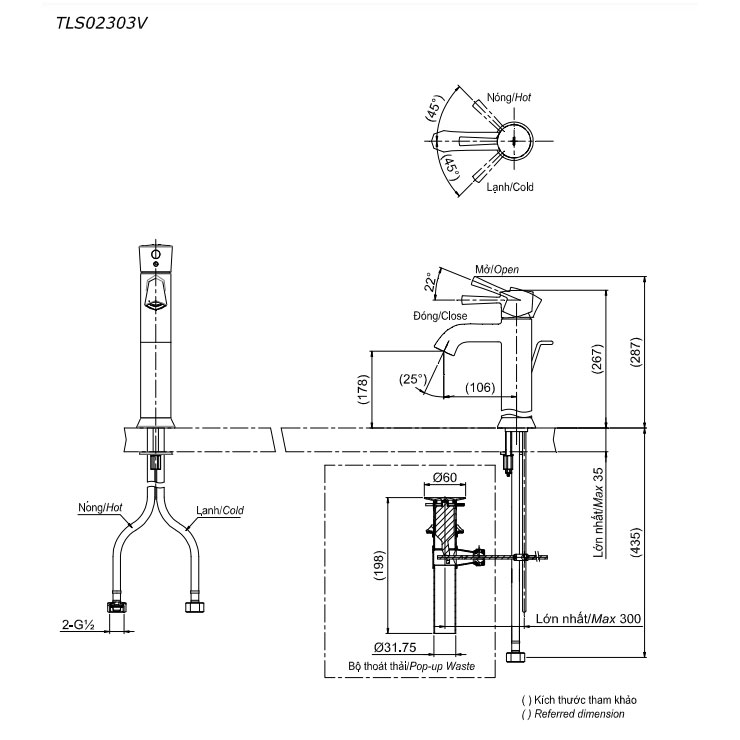 Bản vẽ kỹ thuật vòi chậu lavabo nóng lạnh LN TOTO TLS02303V