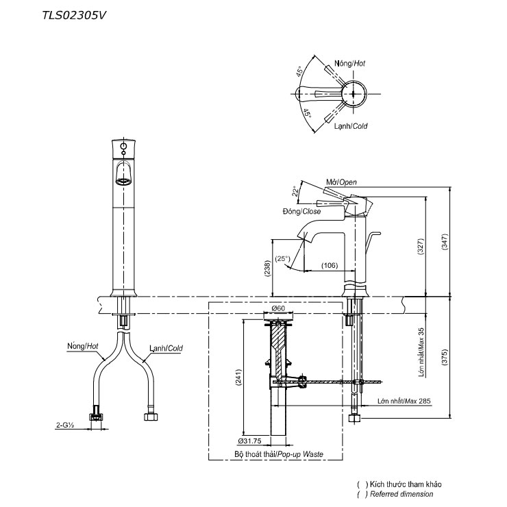 Bản vẽ kỹ thuật vòi chậu lavabo nóng lạnh LN TOTO TLS02305V