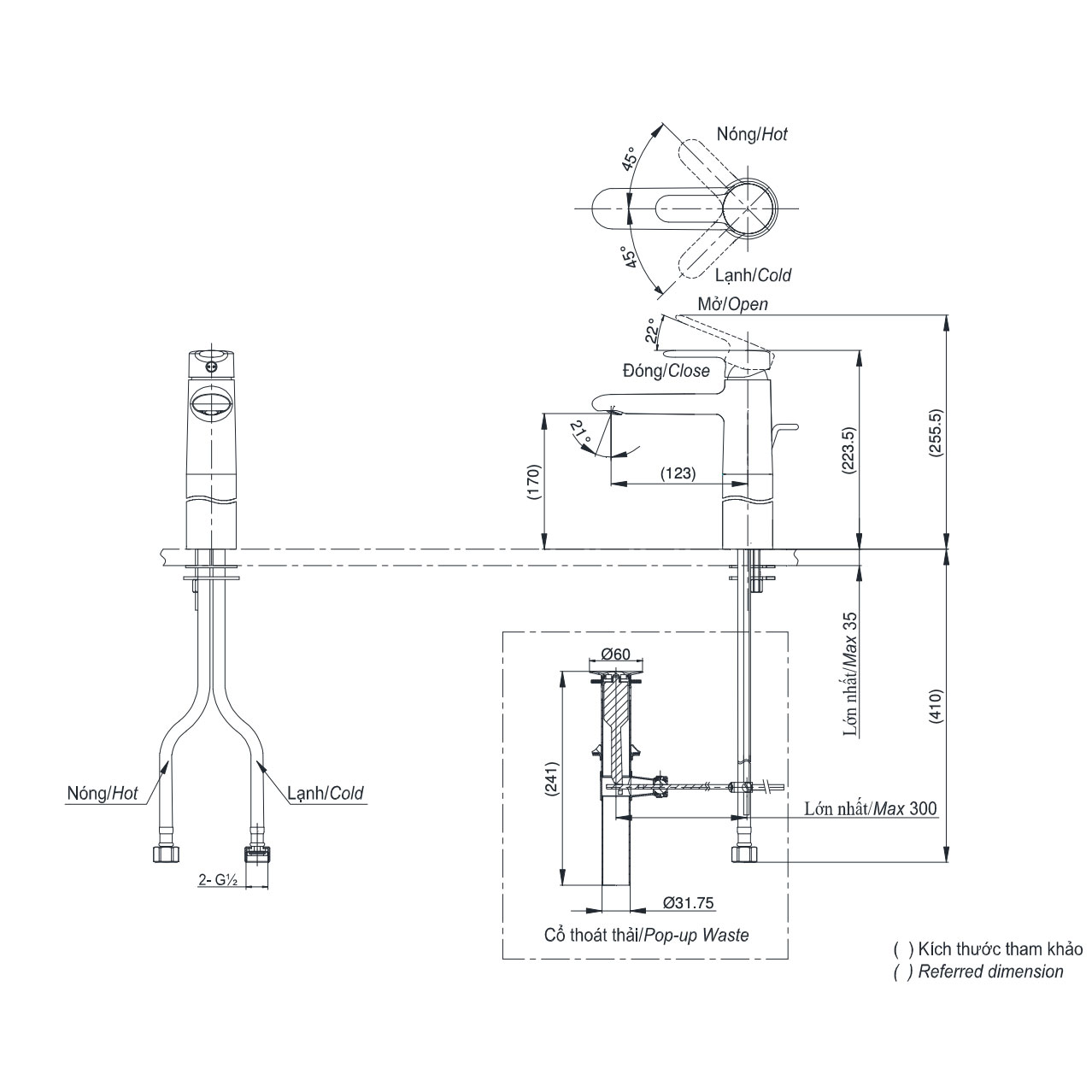 • Sản phẩm bao gồm bộ xả nhưng chưa bao gồm ống thải.