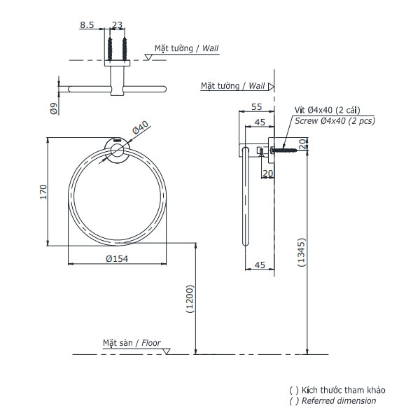 Bản vẽ kỹ thuật vòng treo khăn Toto YTT406V