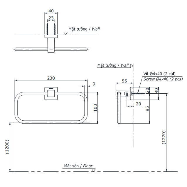 Bản vẽ kỹ thuật vòng treo khăn Toto YTT408V